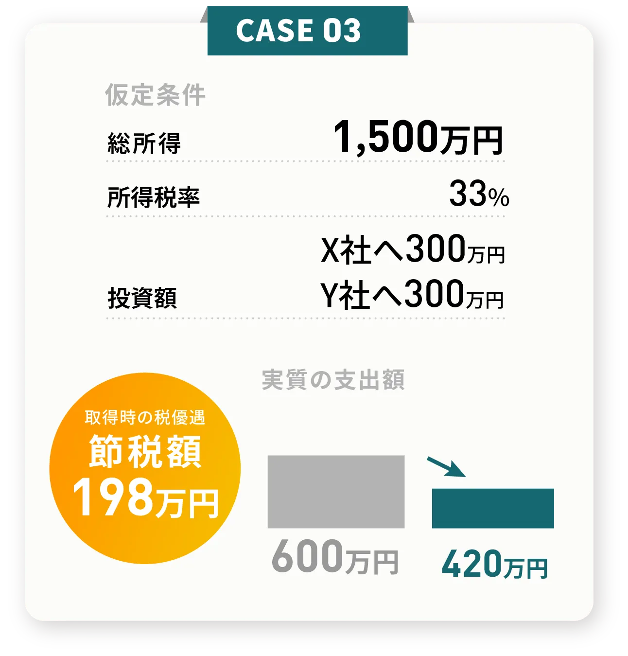 エンジェル税制 優遇措置A適用事例 シミュレーション例
